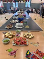Das Buffet wurde im Anschluss schnell eröffnet - alle hatten schon ganz geduldig darauf gewartet. Wir bedanken uns an dieser Stelle bei allen, die fleißig mitgeholfen haben, so ein buntes und vielfältiges Buffet anzubieten. Ein Highlight waren wie jedes Jahr die Ofenkartoffeln von Herrn Dittmann, die nach Rosmarin und Chili dufteten.