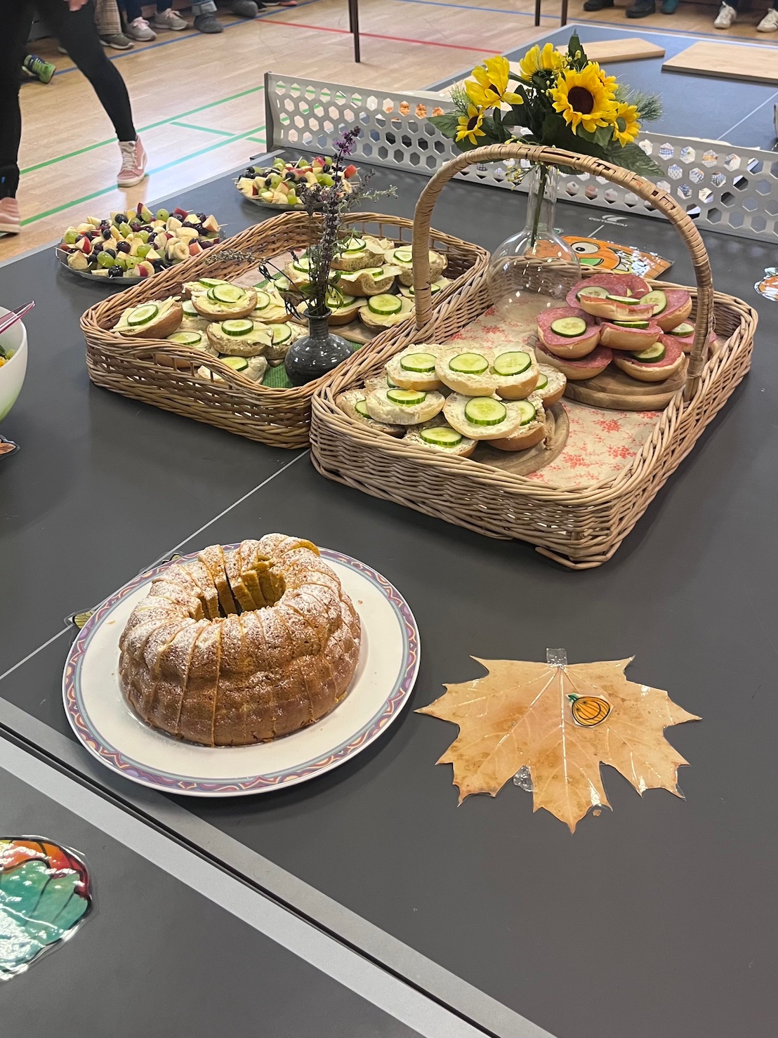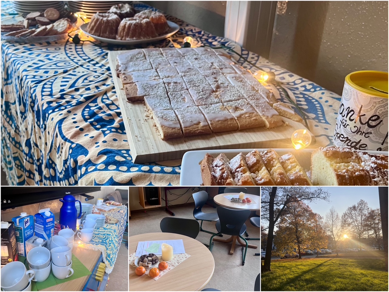 Mit meist guter Laune und einem wundervollen Sonnenaufgang sind wir heute wieder gestartet und haben uns noch einmal mit Freuden an unseren Herbstbrunch am 1. Oktober 2025 erinnert. Mit diesem haben wir traditionell die Herbstzeit eingeläutet und uns bei allerlei Köstlichkeiten die Bäuche vollgeschlagen. Auch die Lachmuskeln haben wir aktiviert: bei einem kleinen Programm einzelner Klassen haben wir Gedichten und Liedern gelauscht und getanzt.